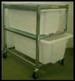 Back stop built in. Tight as possible fitting lids. Protector strip fitted to prevent injury. Stainless steel axle in wheels to prevent locking up (see under “Bin– Ingredient”) |
