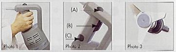· Models are fitted with safety button (A), on-off control button (B) and if continuous operation is required lock button (C) (photo 2 below).